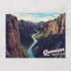 Dramatic vintage-style travel poster illustration of the deep and narrow gorge of Black Canyon of the Gunnison National Park, Colorado. Features the Gunnison River winding through immense, sheer rock walls. Captures the profound depth and geological drama of the canyon. Ideal for hikers, Colorado travelers, and collectors of retro WPA-style national park art.