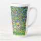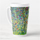 Latte Tasse mit Gustav Klimts Gemälde Apple Tree, I (1912). Ein bunter Apfelbaum steht in einem grünen Feld mit lila, rosa, gelben und weißen Blume. Ein perfektes Geschenk für Fans des Jugendstils und österreichischer Kunst.