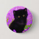 Button mit Gustav Klimt Katze! Dieses flauschige Kätzchen sitzt in einem grünen Feld mit violetten Blumen. Ein puristisches Geschenk für Katzenliebhaber und österreichische Kunstliebhaber!