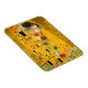Magnet mit Gustav Klimts Ölgemälde mit Goldblatt Der Kuss (1908). Ein Mann und eine Frau, die leuchtende goldene Farben tragen, sich liebevoll umarmen und in einem Feld von Blume küssen. Ein großartiges Geschenk für Jugendliche und österreichische Kunstliebhaber.