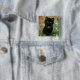Button mit einem Gustav Klimt Kitten! Dieses schwarze Kätzchen trägt einen silbernen Kragen und sitzt in einem Feld aus roten, blauen, weißen und gelben Blumen. Ein wunderbares Geschenk für Katzenliebhaber und österreichische Kunstliebhaber!