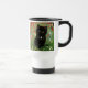 Travel Mug mit einem Gustav Klimt Kitten! Dieses schwarze Kätzchen trägt einen silbernen Kragen und sitzt in einem Feld aus roten, blauen, weißen und gelben Blumen. Ein wunderbares Geschenk für Katzenliebhaber und österreichische Kunstliebhaber!