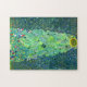 Ein schönes klassisches Puzzlespiel, das eine große Sonnenblume umgeben durch die kleinen Blumen, gemalt vom österreichischen Symbolistmaler Gustav Klimt kennzeichnet.