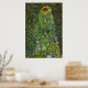 Datum: 1907. Klimts Kunst war unglaublich dekorativ und ganz anders als die Kunst, die damals in Europa produziert wurde. Seine Gemälde ähnelten sehr stark der Kunst, die in Frankreich im Jugendstil gemalt wurde. Die Sonnenblume stellt das Herzstück dieser Bewegung dar. Was wir sehen, ist eine unglaublich große Sonnenblume mit einem dicken, üppigen, grünen Stiel mit vielen Blätter.