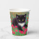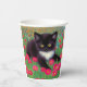 Papier Cups mit einem Gustav Klimt tuxedo Katze! Dieses hübsche Schwarz-Weiß-Kätzchen liegt in einem Bereich mit roten, blauen, weißen und orangefarbenen Blume. Ein phantastisches Geschenk für Katzenliebhaber und österreichische Kunstliebhaber!