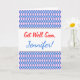 Das Design der "Get-well"-Grußkarte weist ein Muster auf, das blaue und rosa Diamantformen umfasst. Auf der Vorderseite befindet sich auch die ermutigende und unterstützende Meldung "Get Well Soon" sowie der individuelle Name des Kartenempfängers. Das Innere verfügt über eine benutzerdefinierte "Get-well-soon"-Meldung, die dem Kartenempfänger helfen soll, sich zu entspannen. [~Z0000063]