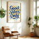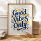 Mit diesem lebendigen "Good Vibes Only"-Kunstdruck strahlt er Positivität aus. Mit fett gedruckter, handgeschriebener Typografie in sonnigen Gelbtönen und Blues, begleitet von energetischen Pinselstrichen, ist dieses Stück eine fröhliche Erinnerung, Optimismus anzunehmen und gute Energie zu gewinnen. Ideal, um Ihrem Wohnzimmer, Schlafzimmer oder Büroraum einen farbigen Pop und eine fröhliche Note hinzuzufügen.
