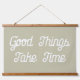 Gute Dinge brauchen Zeit Light Sage Green Retro Script Leinwand Flag Hanging Tapestry mit einem motivierend Zitat für mehr Positivität in Ihrem Leben.