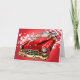 Phantastische Cartoon-Illustration des Weihnachtsmannes mit Geschenken in einem rot-magischen Vintagen Cadillac mit einer goldenen Vorhaube-Ornament! Tolle Karte für Papa oder jeden Fan von Autos.