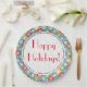 Gute Ferien! Schneeflocken Musterpapiere Teller. Farbenfrohe und festliche Urlaubsplatte, gutes Geschenk!