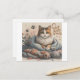Eine herzliche Illustration eines verspielten, glücklichen Haustiers - der Katze -, der sich bequem auf einer gemütlichen Decke ausruht oder an sonniger Stelle durch ein Fenster liegt. Die Szene ist von skurrilen, von Hand gezeichnet Elementen wie Pfotendrucken, Knochen oder spielerischen Spielzeugen umgeben. Die Farbtöne sind weich und fröhlich, was ein Gefühl von Komfort und Zuneigung hervorruft.