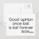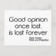 Ein berühmtes Zitat von Jane Austen "Pride and Prejudice: Gute Meinung einmal verloren, ist für immer verloren.