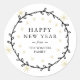 Ein moderner, schlichter Schwarz-Weiß-Sticker oder Umschlag Aufkleber mit einem einfachen, schwarzen Lorbeerkranz und funkelnd goldenen Sternen. Sie können diesen whimsical Happy New Year Aufkleber mit Ihrem Familiennamen oder Namen personalisieren. Perfekter Neujahrsfest im Umschlag Aufkleber mit modernem Bauernstil.