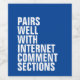 Woll, zu wissen, was dieser Wein gut mit? Abschnitte mit Kommentaren im Internet. Sozialen Medien. Alles geht auf dieses unglaublich witzig, anpassbare Weinetikett! Ideal für ein lustiges Freundschaftsgeschenk. Die unglaublich witzig Formulierung liegt bei Ihnen, oder Sie können es so verlassen, wie es heißt, "Paare gut mit den Kommentar-Abschnitten des Internets" zu lesen. Der königsblaue Hintergrund kann auch angepasst werden, indem Sie auf "Anpassen" klicken.