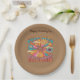 Gute Tage kommen 70er Jahre Papier Teller. Fun Retro-Design mit diesem feinen Gefühl. Der Hintergrund hat einen geschwungenen Blick in einem bräunlichen Karamelll. Aquamariner und goldener Blume Power auf einem Retro-Drehrad. Eine fabelhafte Hommage an die 70er Jahre. Es steht auf meiner Liste für Geschenke!