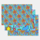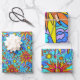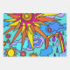 Sonnenaufgang mit Sternenstrahlen auf bewölktem Regenboden und Regenbogen durch die Wolken.