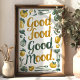 Mit dieser Wandkunst "Good Food, Good Mood" verleihen Sie Ihrer Küche einen Hauch von Positivität. Mit handgeschriebenen Schriften umgeben von grünen und gelben Illustrationen von Obst, Gemüse und Küchenutensilien ist dieses Design perfekt für eine frische und einladende Atmosphäre. Dieses Kunstwerk ist ideal für Zuhause-Liebhaber und -Koch. Es ist eine fröhliche Erinnerung, dass gutes Essen zu guter Laune führt.