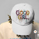 Spielerisch "Good Girl Dieses HAT & CAP enthält den Text "Good Girl" mit einer spielerischen Drehung. Jeder Buchstabe weist eine andere lebendige Farbe auf, die einen lustigen und dynamischen Look schafft. Das Gesamtbild ist kühn und lässig, perfekt für jemanden, der einen leichtgepflegten und sorglosen Stil liebt.