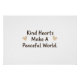 Eine sanfte inspirierende Botschaft mit weichen Herzsymbolen, die Mitgefühl, Freundlichkeit und die Kraft der Liebe feiert, um Frieden zu schaffen.