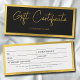 Ein wunderschönes, modernes Business-Imitat bietet einen Gutschein in Gold und Schwarz mit schicker Schrift und Business-Logo. Dieses Geschenkgutachten-Design ist ideal für alle Arten von Unternehmen. Einfach anpassen und zu Ihrem eigenen machen.