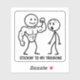 Fügen Sie mit diesem lustigen Aufkleber einen Flex zu Ihrem Tag hinzu. Mit einem kräftigen Strichmännchen, das ihre Muskeln stolz zeigt, während ein anderes Strichmännchen in Ehrfurcht schaut, ist dieses "Stickin to my Training" Design perfekt für Fitness-Liebhaber, Gymnastiker und alle, die ihre Ziele verfolgen. Ideal für die Dekoration von Wasserflaschen, Laptops oder Trainingsgeräten.