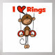 Ein Strichmännchen-Affen-Gymnast auf den Ringen und Text, der "I (Herz) Rings" auf gymnastischen Design-T - Shirt, Hoodies, Tasse, Karten, Aufkleber, Tote-Taschen, und andere Gymnastik-Bekleidung und Geschenke.