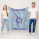 "'GYMNASTICS' FLEECE BLANKET MIT GYMNAST "FLIPPIN FUN" LOGO IN LILA & BLAU.
