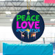 Niedliche Peace Liebe Gymnastik Geschenk für ein kleines Mädchen Gymnast, die Lieben zu stolpern! 3 verschiedene Kinder machen verschiedene Gymnastik-Tricks unter den Wörtern hübsch neonfarben, grün und blau.