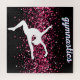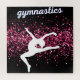 Dieses Mädchen Gymnastik-Design hat einen soliden schwarzen Hintergrund mit rosa Spuren von Imitaten Glitzer und eine Gymnast-Silhouette springen in die Luft.