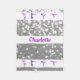 Mit Monogramm, Gymnastikthema Throwdecke Trendy, bokeh Licht-Scheineffekt im Weiß auf grauen Hintergrund. Spitze und Unterseite schmückten mit weißem Streifen mit den modernen, rosa und lila Mädchen Gymnastentwürfen. Fügen Sie personalisierten Namen im lila Skript in der Mitte auf zusammenpassendem weißem Streifen hinzu. Spaß, personalisiertes Mädchengeschenk für Gymnasts. Hübsche Throwdecke für Mädchenraumdekor. Wir haben koordinierengymnastikkissen und personalisiertere Decken in unserem Zazzle.com/angela65* kaufen.