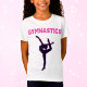Rosa, glänzende Imitate und ein Gymnast machen eine schöne Gymnastik-Boden-Pose, bedeckt mit winzigen Imitaten Glitzer-Flecken.