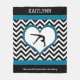 Personalisierte Gymnastik-Fleecedecke mit Zickzack Streifen, ein Gymnast innerhalb eines aquamarinen Herzens und kundenspezifischer Text.