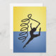 En gymnastique, le ruban sur le sol est un grand acte à faire. Cette conception est une routine de plancher de gymnastique. Le gymnaste est sur le sol dans un saut avec le ruban dans un motif tourbillonnant agréable. Cette routine de ruban de gymnastique semble très bien sur ces invitations