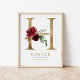 H Letter Monogram Name Marsala Floral Kinderzimmer Poster