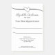 Diese Termin-Erinnerung hat eine Reihe von schwarzen handgeschriebenen Skripten für Ihren Namen auf der Vorderseite. Zusätzliche Texte für Ihren Titel finden Sie unter dem Skript. Es gibt zwei Zeilen, um Datum und Uhrzeit des nächsten Termins des Kunden zu schreiben. Im unteren Teil befinden sich Textzeilen für Ihren Salonnamen, Adresse, Telefonnummer und eine benutzerdefinierte Nachricht. Alle Texte können bearbeitet oder gelöscht werden.