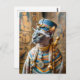 Eine auffallende, haarlose Katze, die als ägyptischer Pharao dargestellt wird, trägt eine goldene Krone und strahlt Power aus. Dieses künstlerische Werk zeigt Eleganz und den rätselhaften Reiz der Sphynxkatze