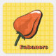 Ein orangefarbener Habanero-Chili-Pfeffer ist mit Motiven aus kubanischem Beton inspiriert und sitzt auf einem gelben Hintergrund mit einer kleineren Version des gleichen Musters und einem Schriftzeichen in der Ecke. Dieser sehr würzige Pfeffer wurde ursprünglich auf der Halbinsel Yucatan gezüchtet, bekommt aber seinen Namen von Havanna in Kuba wegen des starken Handels durch diese Stadt.