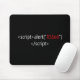 Hacker mousepad, das XXSed wachsamen Code auf schwarzem Hintergrund zeigt