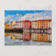 Postcard eines Panoramablick auf die Reflexionen im Wasser einer farbenfrohen Reihe von Häusern und Booten in den Medici-Kanälen des Venezia Nuova Viertels in Livorno. Livorno liegt an der Western Küste der Toskana, Italien. Digitale Fotografie und digitale Malerei von Sue Melvin