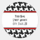 Adressetiketten mit schwarz-weißem Hahnentrittmuster-Design oben und unten mit rotem Schnitt. Personalisieren Sie mit Ihrem Namen und Ihrer Adresse. Suchen Sie nach passenden Einladungen und Porto auch von The Pink Schoolhouse.