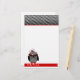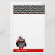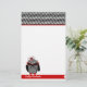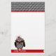 Personalisiertes Briefpapier, das eine Illustration einer grauen und schwarzen Eule mit einem Hahnentrittmusterbauch und roten Füßen kennzeichnet. Eule trägt einen roten und schwarzen fascinator Hut und rote eine Katzenaugen-Sonnenbrille. Personifizieren Sie mit Ihrem Namen.