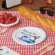 Cartoon Hai springen aus dem Ozean in Feier der jährlichen Haiwoche.