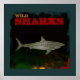 Coole Illustration über Haie für Ihre Zimmer- oder Bürowände. Ein Bild eines Haifischs und ein schwarzer Grunge Hintergrund mit den Worten "Wildhaie" in einem roten Schriftart. Eine exklusive Mixworld-Kreation, die nur hier verkauft wird