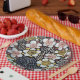 HAIKU/SCHWARZ-WEISS PINK GELBE BLUMEN PAPPTELLER