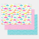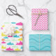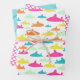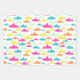 Einfache, aber süße Hai-Muster Packpapier in Aqua, Rosa, Orange, Gelb und Minzgrün. Umfasst die Koordination von Fischskalenmuster und Wellenmuster.