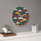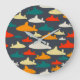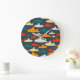 Einfache, aber süße Hai-Uhr in der Marine, aquamarin, rot, orange, gelb und grau.