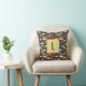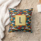 Einfaches, aber süßes Hai-Muster Kissen in Marineblau, aquamarin, rot, orange, gelb und grau mit Monogramm Initial.