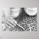 Ein Schwarz-Weiß-Foto einer Frau, die sich die Haare stilisiert. Diese Wandkunst ist eine ideale Ergänzung zu jedem Schönheitssalon oder Friseur. Lassen Sie es sich von uns gerahmt oder machen Sie es sich selbst!