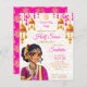 Half Saree Zeremonie Budget Vorlage Einladung niedlich indische Mädchen in traditioneller Kleidung Cartoon mit goldenen Glocken und cerebranche tassel garlands Ganehsha