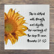 Dieses Halbblütenrätsel zeigt ein Sonnenblumenrätchen mit den Worten der Sprichwörter 31:25 neben der Blume. Die Wörter sind leicht zu personalisieren und fügen Sie Ihre Lieblings-Bibelverse oder motivierend Sprichwort. Die Sprichwörter 31:25 besagt, dass die ideale Christliche Frau sich jetzt wohl in ihrem Leben fühlt, ohne Sorgen würdevoll ist und auf das vorbereitet ist, was die Zukunft bringt. Es ist ein großartiges Christliches Geburtstagsgeschenk oder Geschenk für eine Frau, die Sie bewundern. "Sie ist mit Kraft und Würde bekleidet; sie kann über die nächsten Tage lachen. Sprichwörter 31:25"